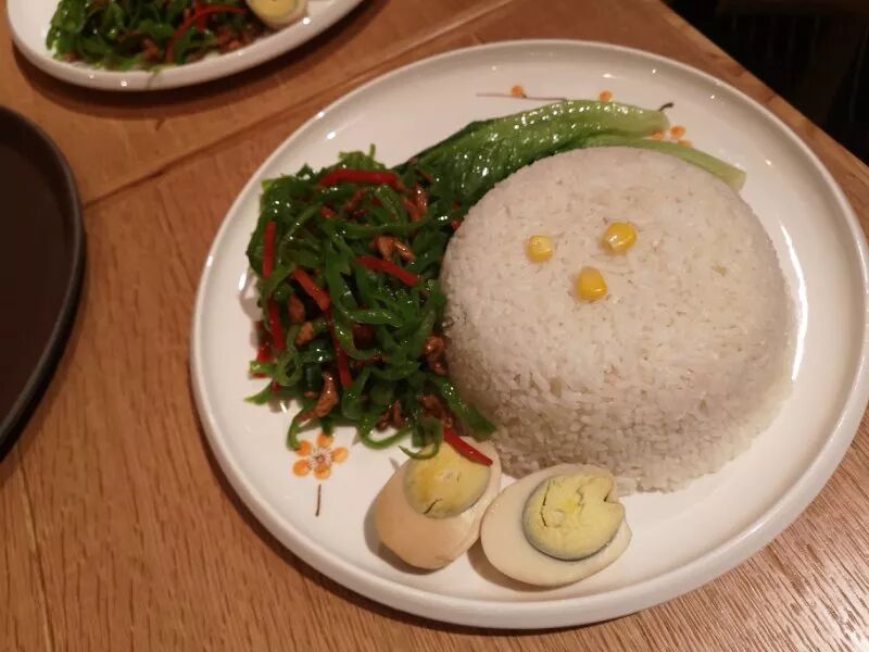 青椒肉丝+八味卤鸡蛋+时蔬+香米饭