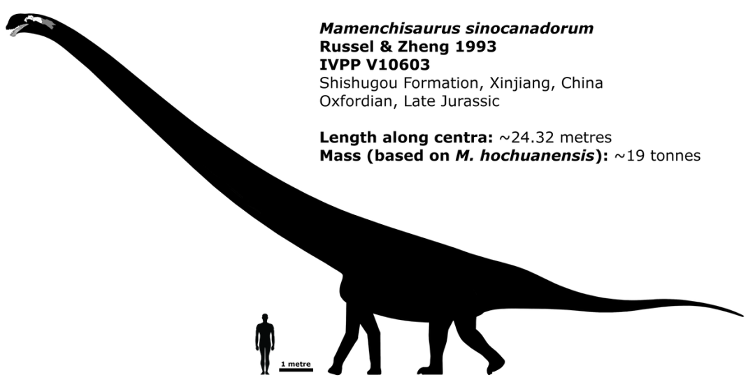 我叫中加马门溪龙,生活在距今1亿4千5百万年前的中国新疆准噶尔盆地。我可是中国体型最大的恐龙,从头到尾有35米长,体重有50-75吨。