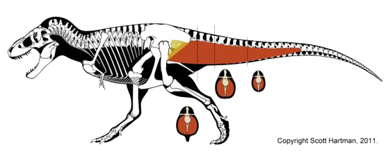 我们有又粗又长的大尾巴,这个尾巴可不一般,关系到我们的生死存亡。沉重的大尾巴可以平衡长脖子的重量,使得我们在行走时保持身体的平衡,在我们的大腿和臀部有一组连接到尾部的肌肉,叫做尾股肌。当我们行走时,大尾巴随着身体的前进左右摆动,为后肢的运动提供着强大的动力。(ps:现存的蜥蜴,鳄鱼等爬行动物也拥有功能类似的尾股肌。)